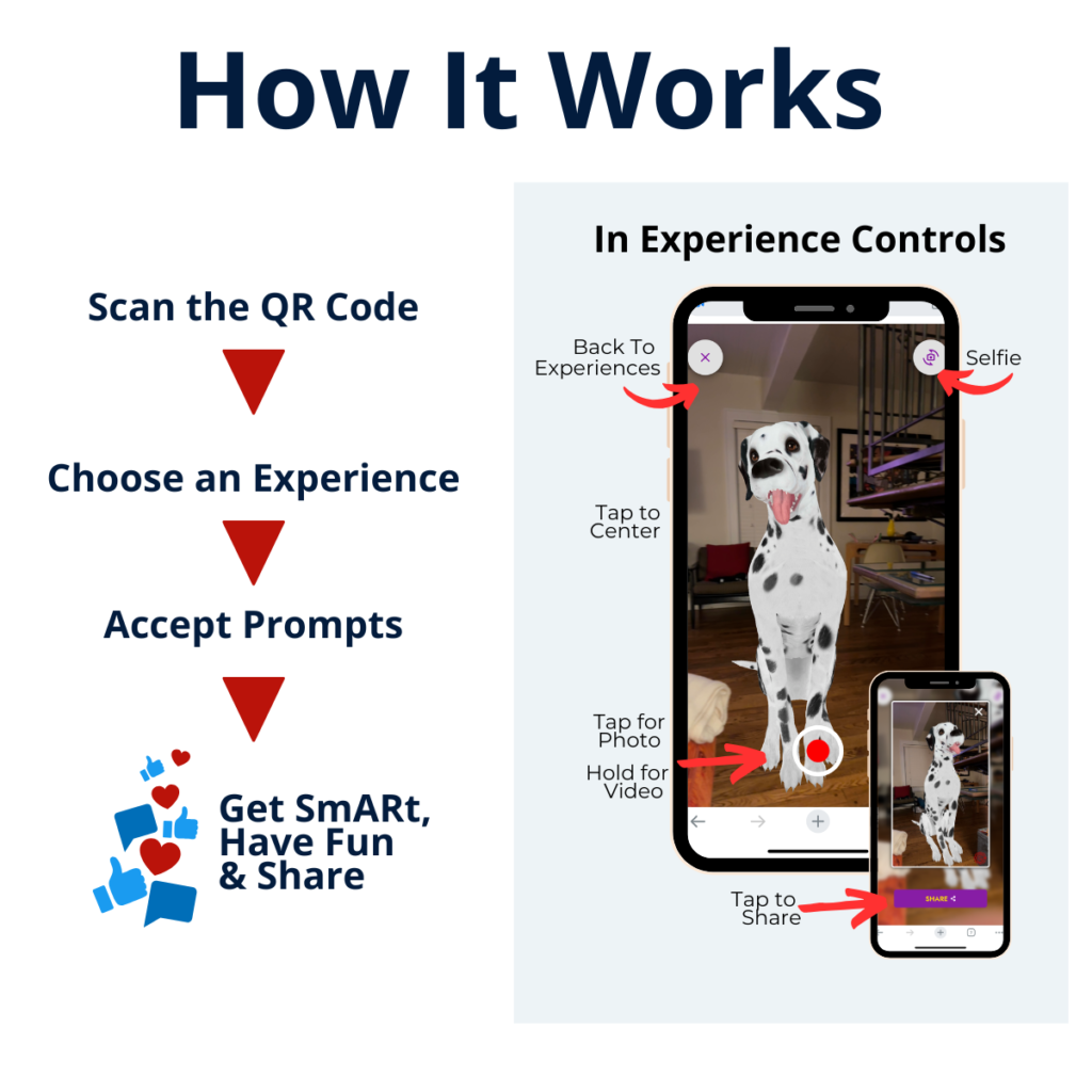 AR experiences require internet and work best with strong signal. If connectivity is spotty, guests can screenshot the QR code and use the experience when they get home or to better wifi.